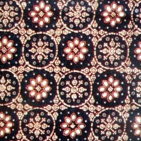This motif is believed to be influenced by Indian cloth named ‘Patola’, that brought to Indonesia by Indian trader. This motive was developed from coast cities in the north of Java, like Cirebon and Pekalongan before it arrived in Keraton. The pattern consist of square and rectangle form and dots as ornaments. There’s a differences in the color used in every place, in Pekalongan the dominant colors are red, green, blue and yellow as the consumer of this cloth are from India and China. Jogja’s Nitik are using indigo, brown and white color.